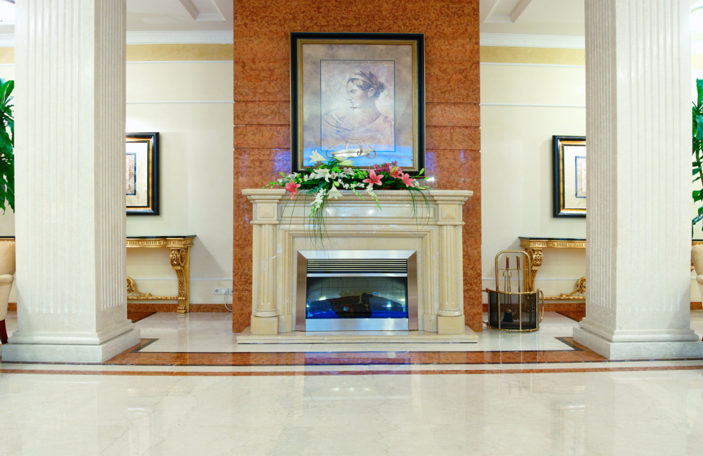 Următoarea opțiune este marmura, datorită aspectului elegant și luminat pe care îl oferă. Acest material este considerat deopotrivă de arhitecți și designeri ca fiind unul dintre cele mai luxoase, tocmai de aceea este atât de potrivit pentru spațiul din spatele șemineului. În ceea ce privește tipul de finisaj, ți-l recomandăm pe cel lustruit. La fel ca în cazul ardeziei, și marmura trebuie sigilată periodic pentru a etanșa porii și a deveni mai durabilă.