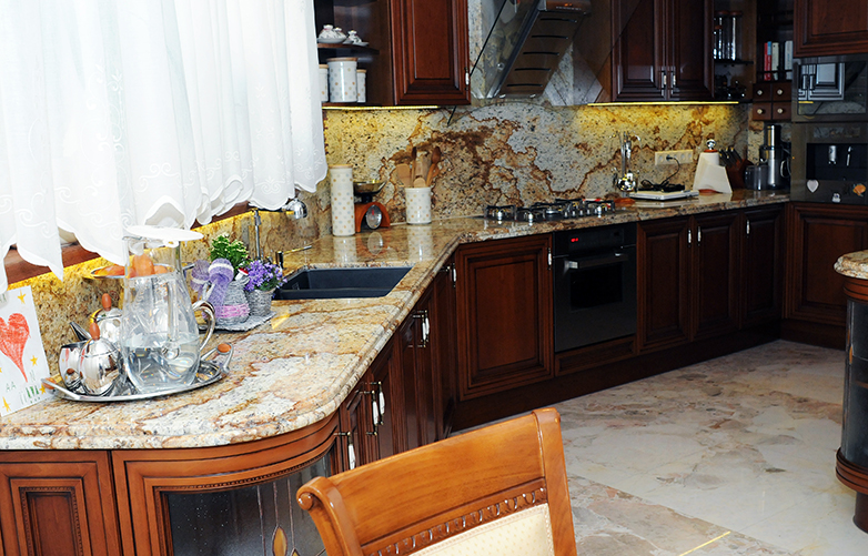 Este cel mai dificil spatiu din casa, din punct de vedere al finisajelor, pentru ca are nevoie in egala masura de rezistenta si protectie. Pe de o parte, blatul de lucru este expus petelor, zgarierilor de la cutite, robotilor de bucatarie, vaselor fierbinti etc. Pe de alta parte, pardoseala este expusa alunecarilor.