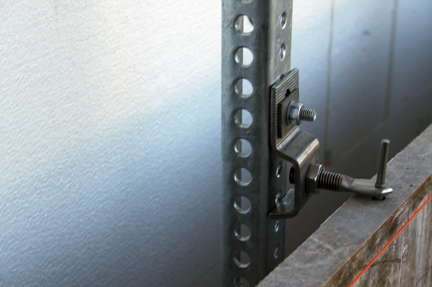 ← O cladire futurista, cu fatada de marmura, pe montare uscata
