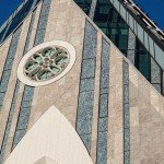 Liniile verticale reaizate din piatra naturala sunt cele care dau nota si impresia generala si la Paulinium, dar de aceasta data piatra si nu sticla este cea dominanta. Piatra verde este completata de Kirchheimer Muschelkalk (un calcar de orgine germana, care se gaseste langa Kirchheim) intr-o varietate de finisaje, in timp ce fereastra cu vitralii si rozeta de pe turn sunt incadrate cu calcar alb. Partea din spate a cladirii este suprinzatoare: aici liniile dominante pe varticala se schimba brusc si se intersecteaza pe verticala (verde) si orizontala (cenusiu).