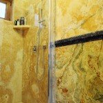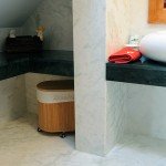 De aceea, materialele folosite pentru placarea bailor sunt foarte importante: oferind protectie ridicata, estetica deosebita si durabilitate, piatra naturala ramane cea mai potrivita idee pentru orice baie. Materialele naturale adauga un plus de calitate, iar culorile si posibilitatile de finisare ale acestora ofera alternative practic infinite de amenajare si creare a unor interioare originale. Cele trei bai pe care vi le prezentam astazi sunt lucrari facute in cadrul aceleiasi locuinte: doua bai de serviciu si una care deserveste un dormitor, fiecare cu personaliatea proprie si bazandu-se pe materiale diferite pentru un efect specific si durabilitate. Calitatea finisajelor, piatra aleasa pentru ele, in culori si cu venaturi sau imprimeuri distinctive, precum si prelucrarile speciale scot aceste bai din rutina si creeaza spatii relaxante, care ofera o mica oaza de liniste in orice moment al zilei, pentru oricine le foloseste.